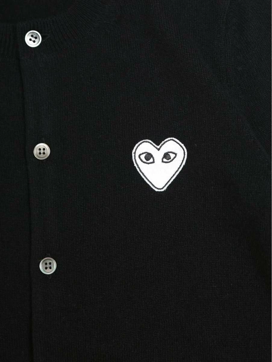 Women’s White Heart Logo Cardigan in Black from the new Comme des Garcons PLAY Collection.