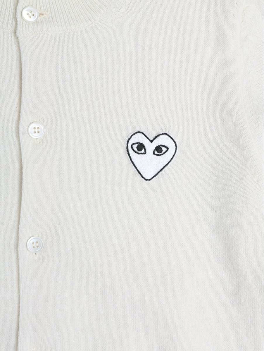 Women’s White Heart Logo Cardigan in Off White from the new Comme des Garcons PLAY Collection.