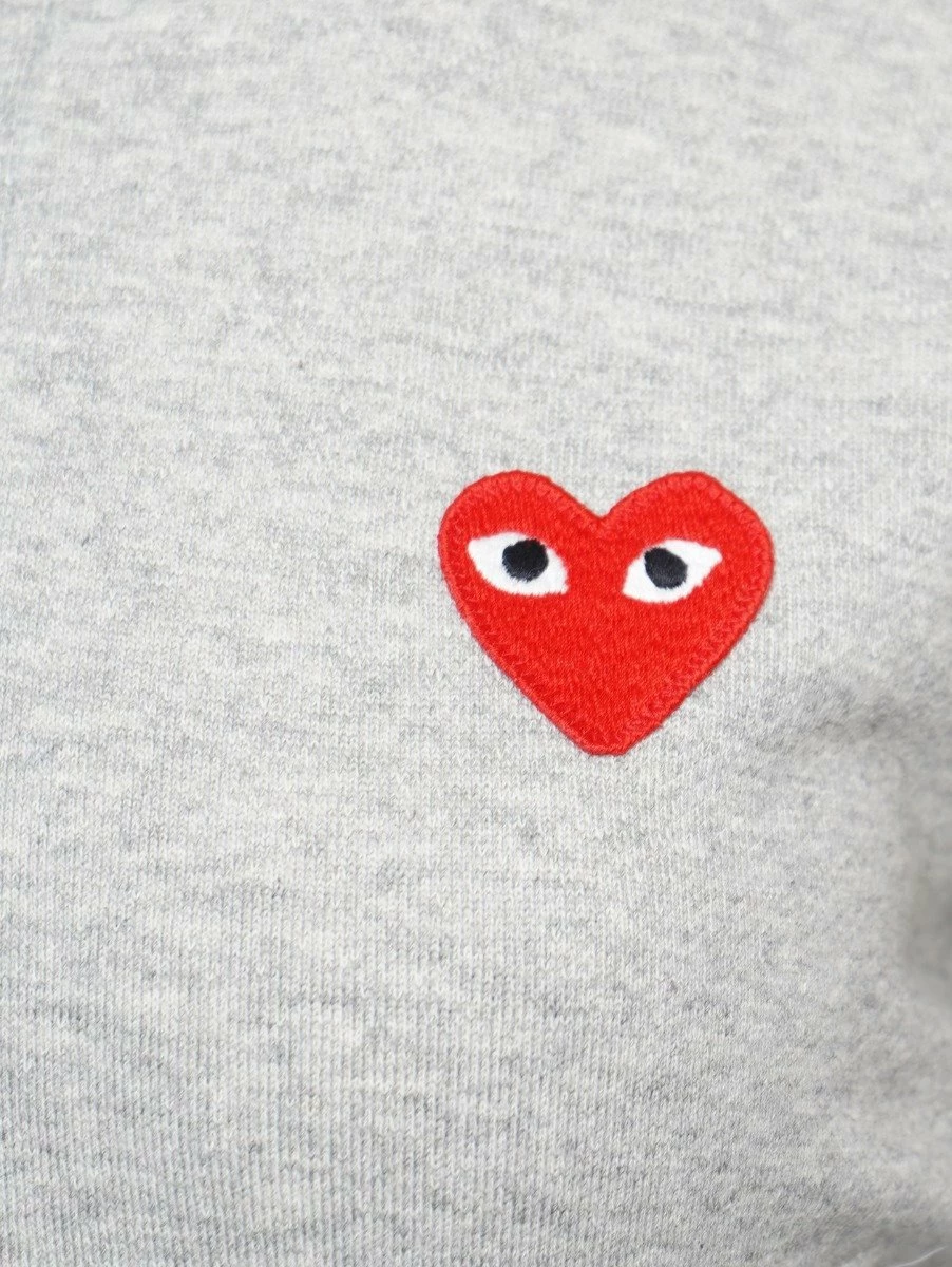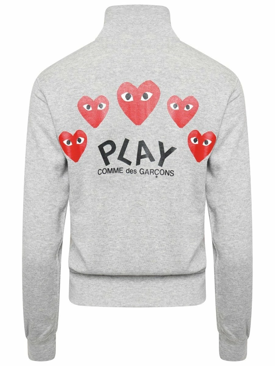 - The Comme Des Garçons PLAY T251 Red Heart Track Jacket in Grey is a must-have for any fashion-forward wardrobe. Featuring the iconic red heart logo, this jacket blends streetwear with high fashion.