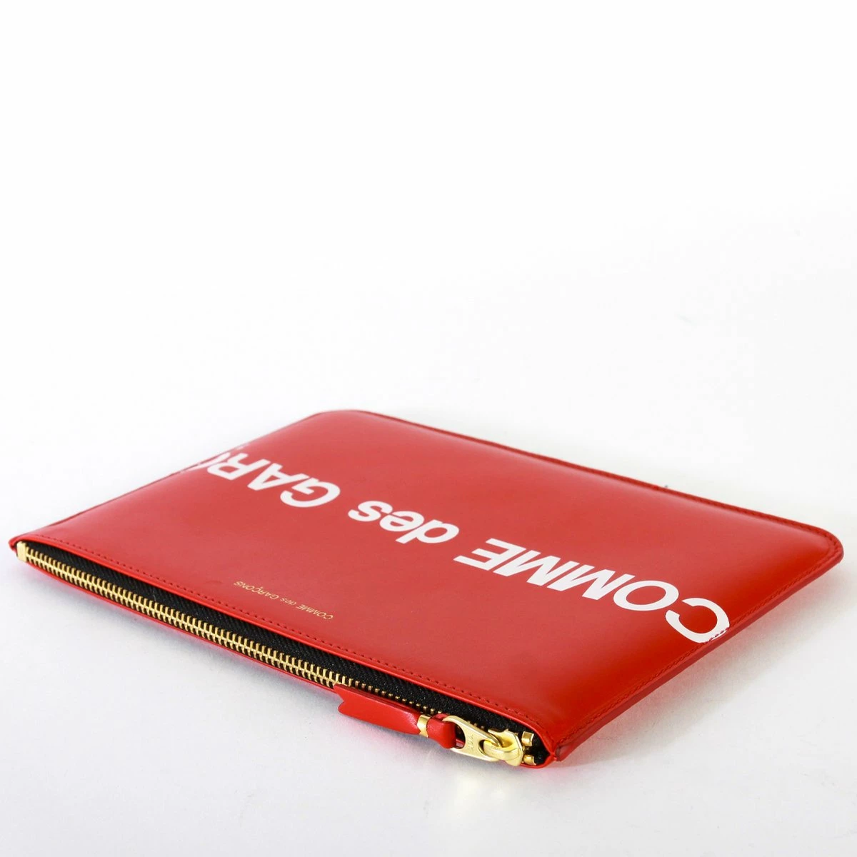 SA5100HL Huge Logo Wallet in Red from the Comme des Garçons Wallet Collection. From humble beginnings in 1969, Japanese designer Rei Kawakubo has built Comme des Garçons into an internationally renowned label that includes a WALLET line of luxury leather accessories.