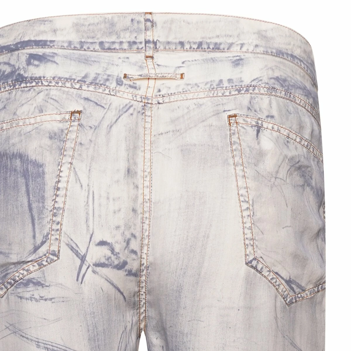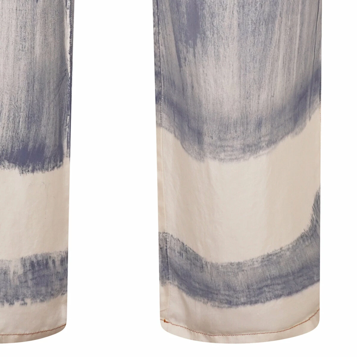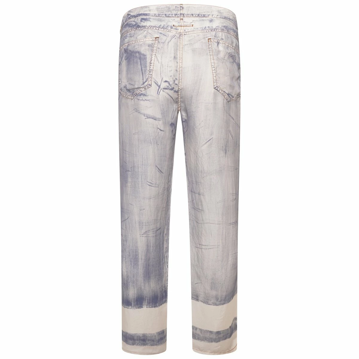The Silk Low Waist Jean Effect Paint Trousers from Jean Paul Gaultier. This season Jean Paul Gaultier honours a number of iconic archive pieces and prints. These trousers feature a graphic print throughout as well as being low-rise.