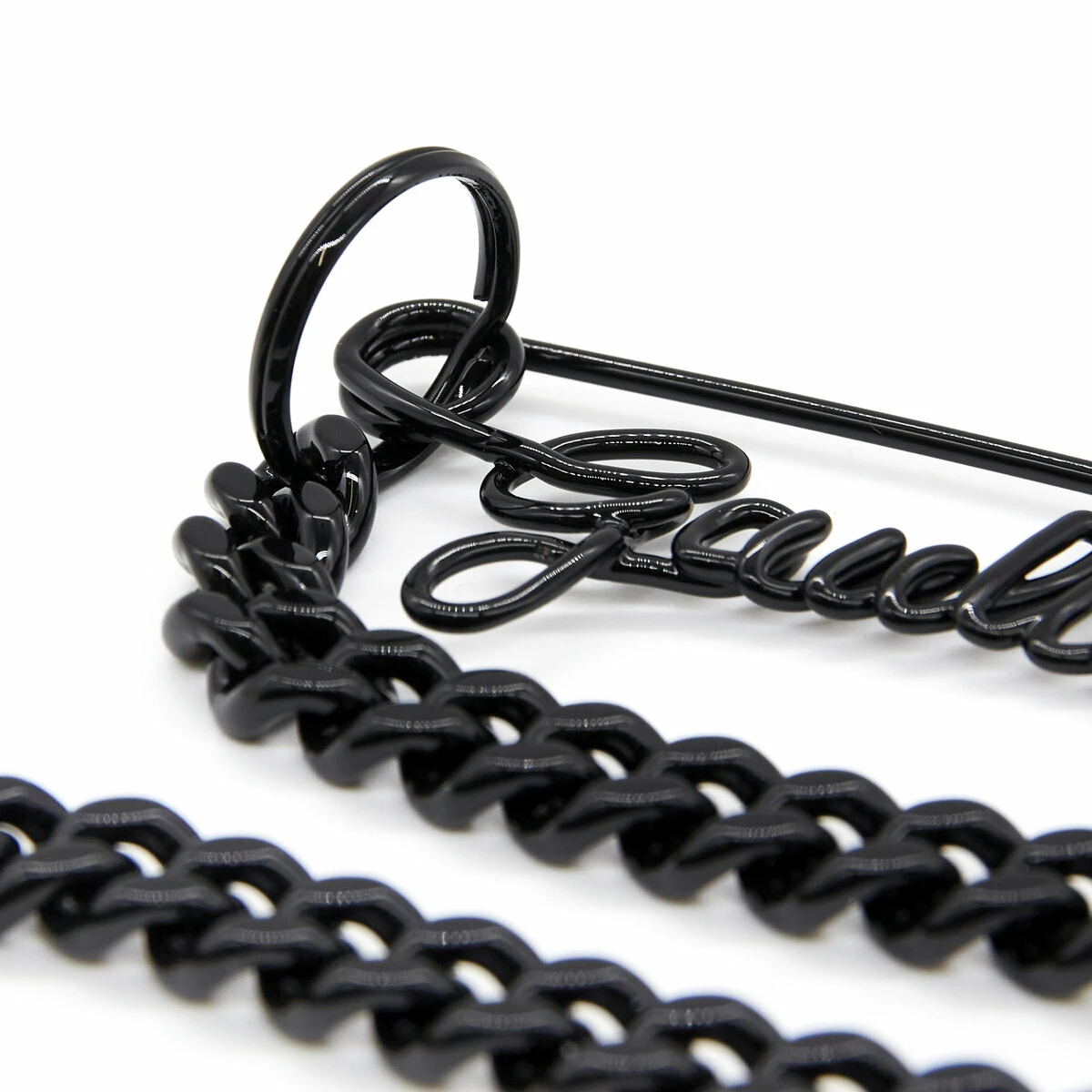 - Crafted with high-quality materials, the Safety Pin Necklace features a sleek black finish and a unique safety pin design, embodying the rebellious spirit of Jean Paul Gaultier.