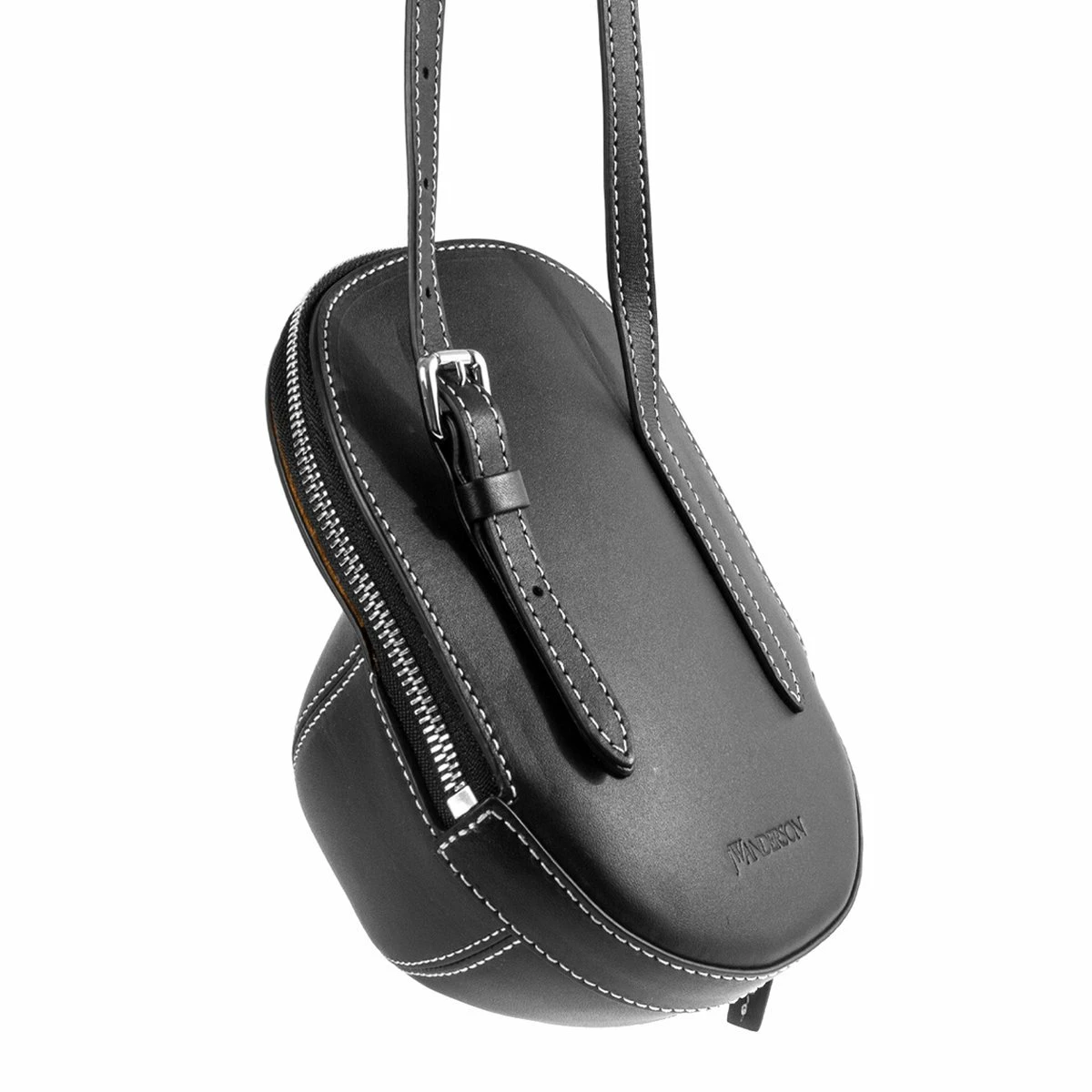 A staple from JW Anderson, the Midi Cap Bag is constructed from smooth leather and features baseball cap style detailing, a zip closure, soft suede lining, and a belt-style strap.