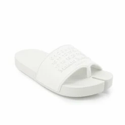 Maison Margiela Logo Embossed Tabi Sliders White In White – Men’s Designer Sliders & Sandals