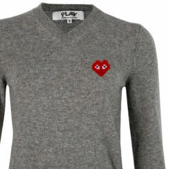 Comme des Garçons PLAY Space Invader Heart Jumper – Grey | Women’s Designer Cardigan