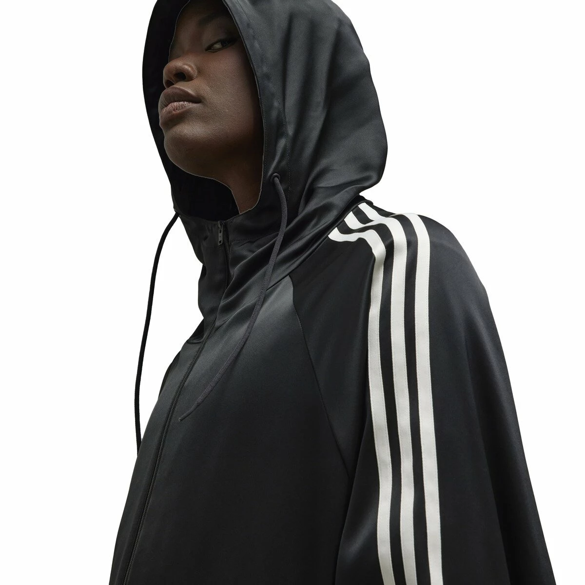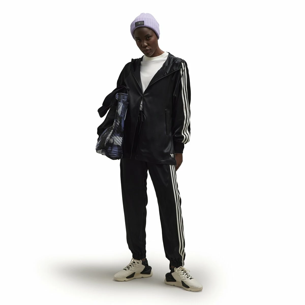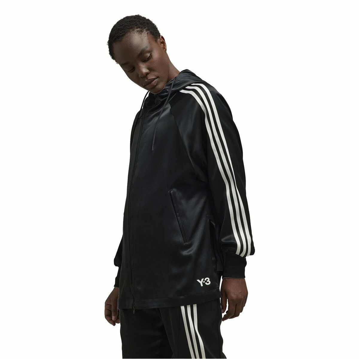 - Experience the fusion of high fashion and functionality with the Y-3 Tech Silk Hooded Jacket in Black. Designed for the modern woman, this jacket combines sleek aesthetics with practical features.