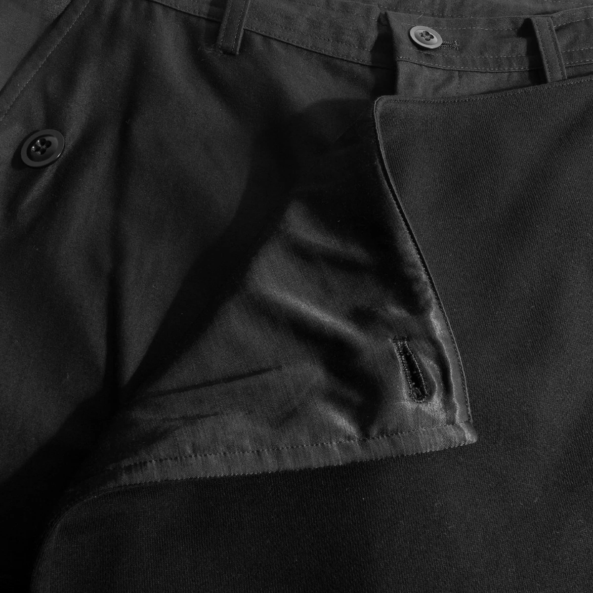 These luxurious trousers from the Y’s Collection boast a slim fit, contrasting textured panels, a zip fly, three pockets, and a front apron panel.